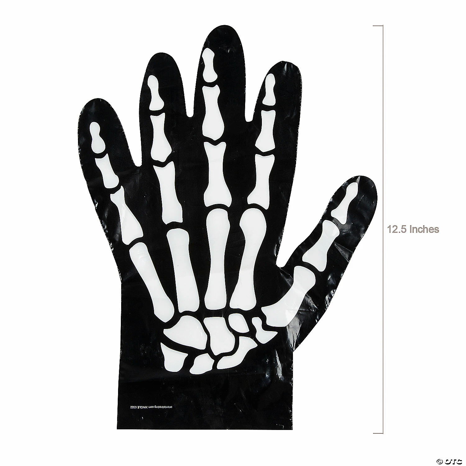 โข Perfect Size for Parties: These treat bags are just the right size for Halloween candies. Fill them up with tasty treats and hand them out as party favors at your next Halloween celebration!โข Sweet Style: Display your delicious delights or party favors in style with these spook-tacular bags! You can make a decorative statement at any Halloween event with these bags and some fab-boo-lous treats.โข Travel-Friendly: Once the party is over, your guests will be happy to take home your favorite Halloween candy, popcorn or other goodies in these easy-to-carry bags. Product Description:Give the little monsters a real (treat-filled) hand this Halloween with our Skeleton Hand-Shaped Plastic Goody Bags. Break out these classically creepy treat bags as part of your festivities. Perfect for giving out finger foods like candy corn and more. Halloween fun is in your hands! ยฉ OTCSize: 10″ x 12-1/2″ with 4″ ties.Quantity: 12Material: Plastic.